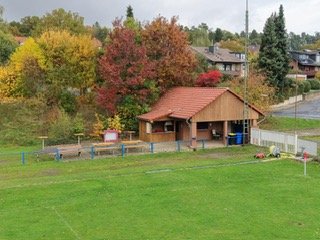 - Sportheim mit Umkleideräumen, Duschen, Toiletten, Gemeinschaftsraum und kleiner Küche