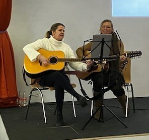 Nach den Begrüßungsworten wurden gemeinsam einige Weihnachtslieder gesungen. Vielen Dank an Daniela und Janina, die mit Ihren Gitarren und ihrem Gesang eine schöne Atmosphäre schafften. Nun konnte sich auf Kuchen, Kaffee und Tee konzentriert werden. Als alle gestärkt waren, hat Lea die Weihnachtsgeschichte „Ein kleines Stück vom Glück“ vorgetragen.